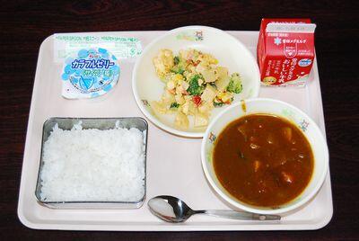 【受験生応援メニュー リクエスト献立 チキンカレー 海藻サラダ】