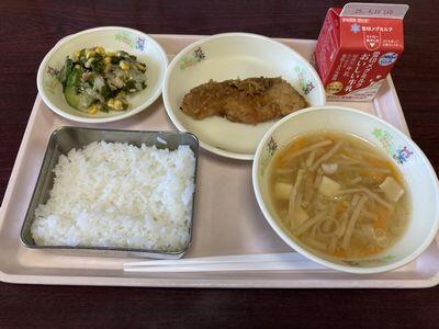 ごはん 赤魚のみそチーズ焼き ひじきのサラダ オニオンスープ 牛乳 729㎉