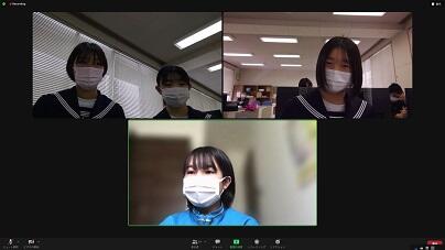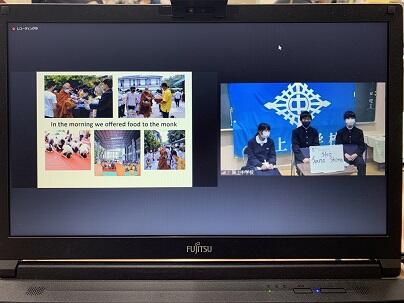 ↓ 来週オンライン交流を行う大原中学校について全校生徒で確認しました。