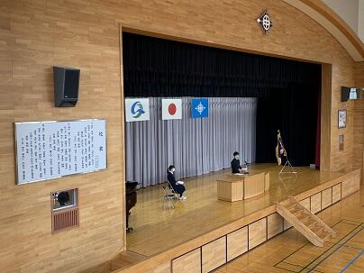 33日の夏休みが終了し、今日から1学期が再開しました。集会では、私から「一つ一つの行事の目的を十分に自覚し、全ては仲間、そして自分の成長のために、という意識を持って臨んでほしい」と話しました。また、県中総体・東北大会・いじめ防止動画コンクールの表彰も行いました。
