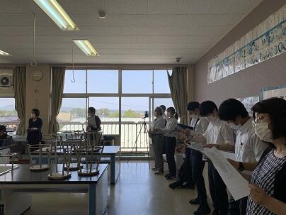 生徒たちは,実験やバレーボールの3タッチゲーム,話合いに,真剣に取り組んでいました。
