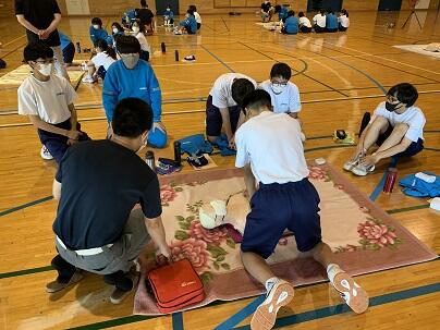 気仙沼警察署員の山崎様、佐々木様にお越しいただき、全校生徒・教職員対象の不審者対応訓練を行いました。警察官の1名が不審者役となっていただいたのですが、あまりの迫力に逃げ腰になりそうでしたが、それでも対応した職員は上手に距離をとりながら周りに危険を察知させ、その場にできるだけ押しとどめてくれたので、全校生徒は安全に避難することができました。もちろん反省点はいくつもあります。全教職員で共有し、次に生かしていきたいと思います。