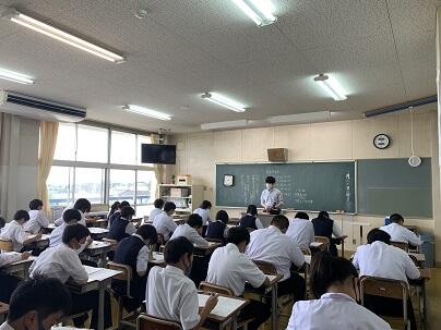 今日は教育実習生の研究授業がありました。階上中学校の卒業生の伊東先生です。6月3日から教育実習が始まり、残すところあと2日になりました。笑顔が素敵で、とても優しい先生なので、教育実習が終わってしまうのをとても残念に思っている生徒が多いと思います。