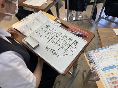 ↓階中タイム (運動会実行委員は演技図の話し合い・その他の生徒は教室でAIドリルに取り組みました)