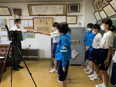 振替休業日開け、今朝は表彰朝会からスタートしました。