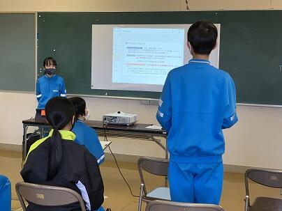 3年生は数学で「平方根」の問題演習、2年生は国語で「書き言葉と話し言葉」の学習を行っていました。どちらの授業も、子供たちの問いを上手に引き出し、つなぎながら学びが進んでいきました。復習にも力を入れてほしいと思います。