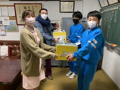 励ましのメッセージや水,アルコール消毒などをいただきました。