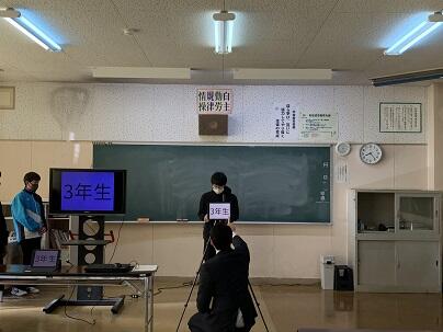 部活動から先輩方へのメッセージと3年間の思い出のビデオを上映しました。