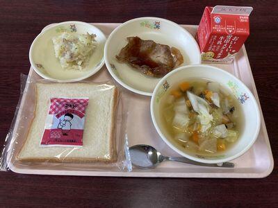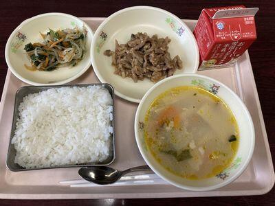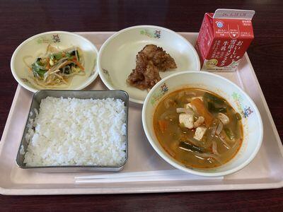 ※ 今日の主菜はタンパク質が強化された「からあげたんぱっくん」です。気仙沼市のユーチューバー、オガトレさんと一関市のオヤマさんが共同開発したもので、地産地消を積極的にすすめたいということで、今回無償提供していただきました(本吉共同調理場 もぐもぐメモより抜粋)。
