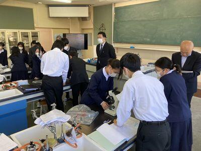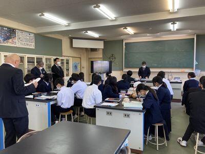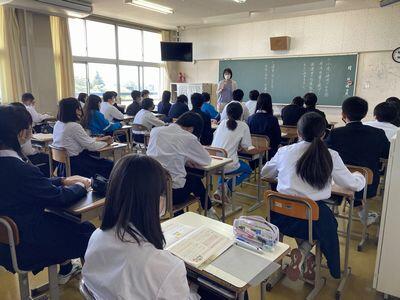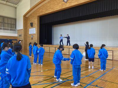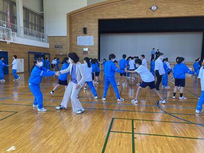 授業を参観いただいたのは、1年生のソフトボールの授業でした。1年生は、寒さなど全く感じないような様子で、一生懸命練習に励んでいました。まだまだボールを受けることに恐怖感を持っている生徒が多いようですが、楽しみを見いだしながら頑張ってほしいと思います。