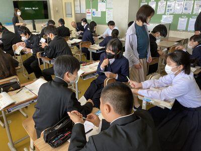 冬休み中の課題として、「書きぞめの毛筆・硬筆の作品を提出する」ことが全学年で出されていましたが、昨日、市立学校書きぞめ展に出品する生徒が選出されました。今日から来週にかけて練習会が開かれます。