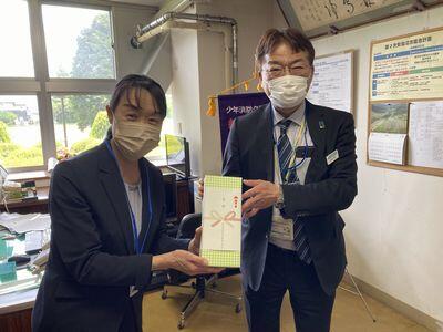 ブラッシング指導の終了時に、厚生委員会の小野寺さんと山内さんが、集まった支援物資を直接、三浦先生に手渡しさせていただきました。
