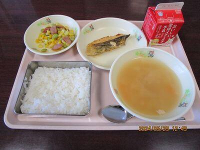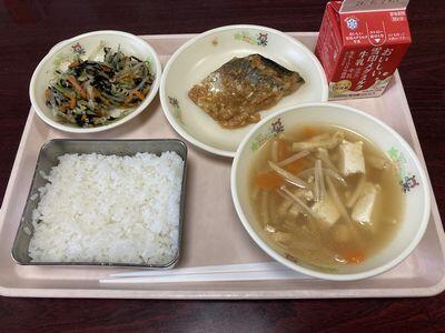 ごはん さばのみそ煮 五目豆 白玉だんご 牛乳 835㎉