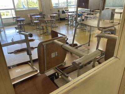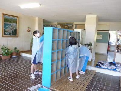↓ 放課後 竜巻発生対応 教室から出てガラスの少ない廊下へ避難