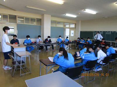 今日は令和6年の最終登校日でした。午前中、約90分の時間設定の中で、竹富町立大原中学校さんとの第2回オンライン交流会を実施しました。本校の生徒たちは、大原中さんが実施している「西表縦断」や「サップ体験」「ボランティア体験」などについての発表に、たいへん興味深く耳を傾けていました。本校からは、探究学習での学びの成果を、各学年代表グループ(個人も)が堂々と発表しました。