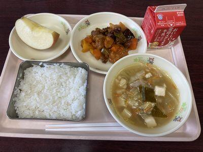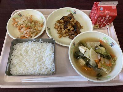 ごはん こぎつねごはんの具 ごぼうと大豆のサラダ なめこのみそ汁 牛乳 780㎉
