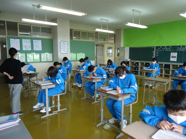 週2回の朝学習もすっかり定着しています。本校では、年間を通して数学の計算問題に全校で取り組んでいます。まず、自力で解いてから、互いに確認し合ったり、一緒に解決したり、分からないところを聞き合ったりしています。今朝も生徒たちの様子を見ていて、10分という時間の重みを感じました。
