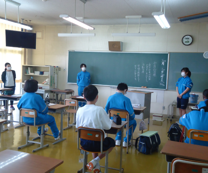 今日は、放課後に学校歯科医の三浦嘉麿先生、歯科衛生士さん3名にご来校いただき、ブラッシング指導をしていただきました。今回は、感染症予防のため、ブラッシングの実践は行わず、講話を中心にご指導いただきました。