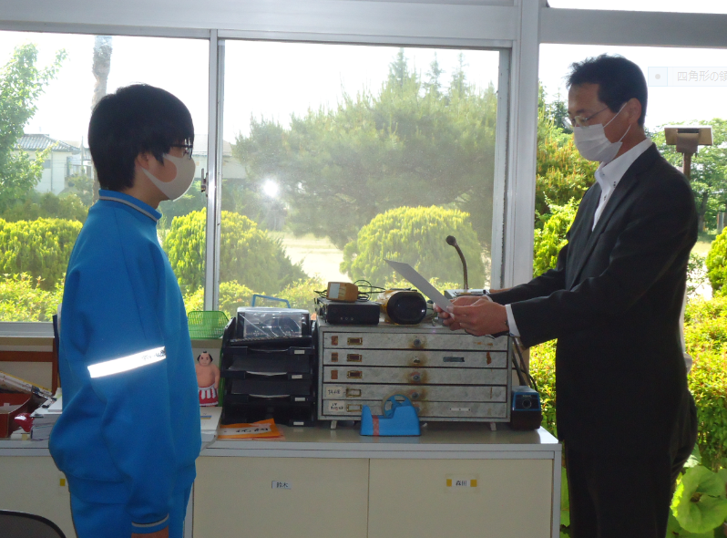 本校の防災学習を中心とした教育活動をまとめ、今年度のESD大賞に応募したところ、見事、中学校賞を受賞しました。本校の取り組みが全国でも高く評価されました。受賞式は例年、ユネスコスクール全国大会・ESD研究大会で行われますが、今年度は12月6日のユネスコスクール全国大会がオンラインで開催され、そこで受賞の紹介がありました。賞状と副賞は先週、学校に送っていただきました。副賞として、カシオ電子辞書をいただきました。図書室に置きますので、生徒の皆さんに活用してほしいと思います。