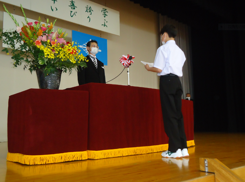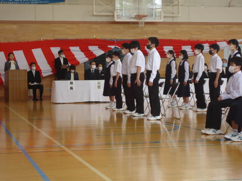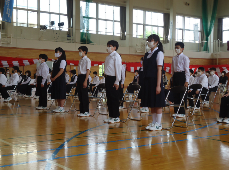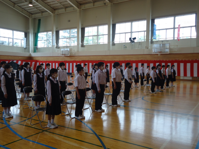 放課後に、後期生徒会役員・委員任命式と生徒会引継ぎ式を行いました。今日、三大伝統のたすきが、3年生から1,2年生へ渡りました。後期からは、各委員会の委員長は全員2年生(写真中央)です。今後の活躍を期待しています!3年生はこれまでの経験を生かし、後輩たちを支えてほしいと思います。