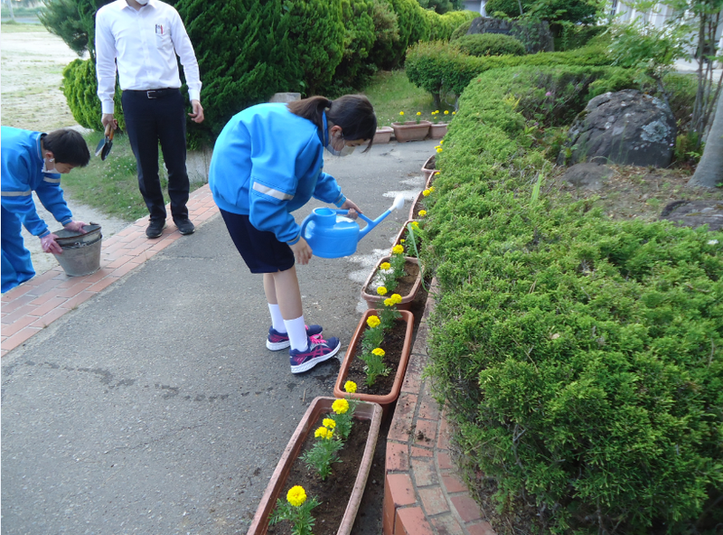 昨日の放課後、緑化委員の皆さんが植栽作業を行いました。寒いなか、土おこしから丁寧に取り組んでいました。暑いときも、寒いときも欠かさずに花壇のお世話をしてくれています。本当にありがとうございます。葉牡丹、パンジー、プリムラの花々がとてもきれいです。今回は、水仙とチューリップの球根も植えてくれました。春が待ち遠しいです。
