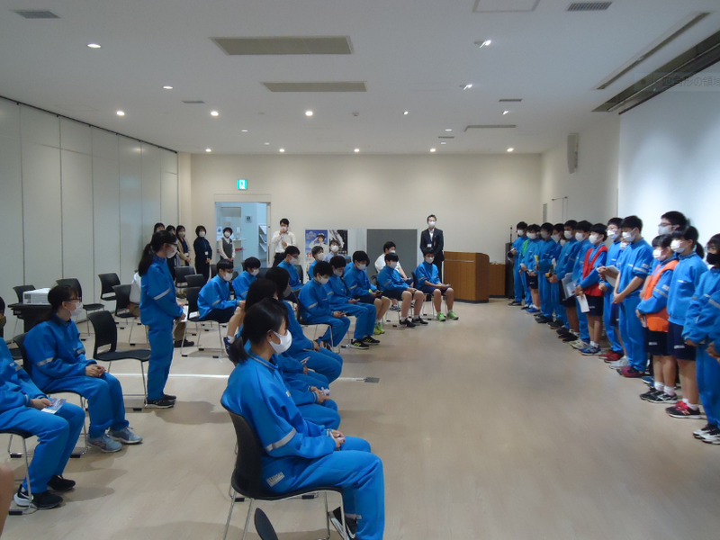 本校の防災学習を中心とした教育活動をまとめ、今年度のESD大賞に応募したところ、見事、中学校賞を受賞しました。本日は、その受賞報告をするために、校長先生と代表生徒2名が市長表敬訪問にいってまいりました。菅原市長さんからは、「これからも地域のために防災学習に励んでほしい」と激励のお言葉をいただきました。代表生徒は「今後はさらに生徒の防災意識を高められるように努めたい」「本校の学びを日本だけではなく、世界に広げたい」と抱負を伝えてきました。
