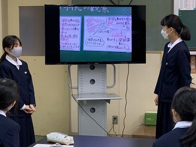 12月2日(土)に予定している、今年度の総合的な学習のまとめとなる「探究学習発表会」に向けて、本日中間発表会が行われました。プレゼン発表のあとに質疑応答、という流れで、2、3年生の生徒全員がプレゼンテーションを行いました。残り一ヶ月で加除訂正を加えていくこととなります。