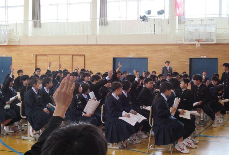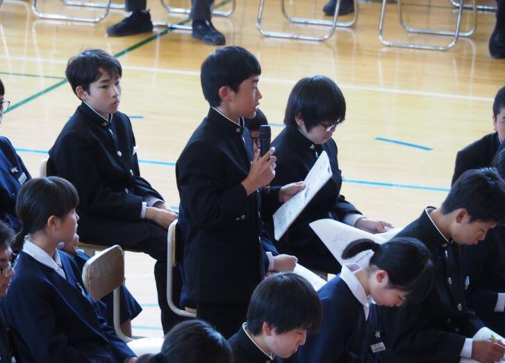 総会の終わりには、「生徒会活動は自治活動であるので、『~してもらう』のではなく、『~していく』という気持ちで取り組んでほしい。一人一人の笑顔に溢れ、自分らしく輝きながら活躍できる生徒会を期待している。」と校長先生から激励されました。