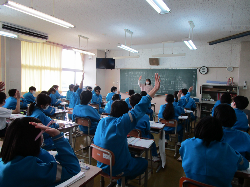 防災委員会の生徒が「階上中学校の防災・減災教育について」説明した後,3年生全員で全国の先生方と1時間にわたって,対話をしました。