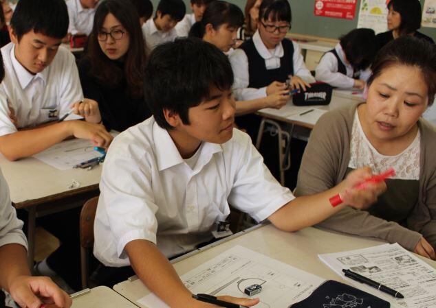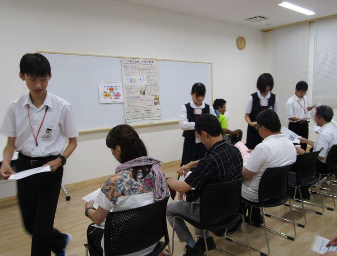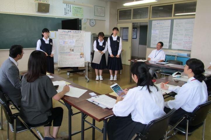 午後は、来週12日(日)にデビューする予定の「伝承館英語ガイド」の練習を行いました。右端の写真は、本校ALTのケイト先生を前にした実践練習の様子です。本校19名の生徒が英語ガイドにも挑戦しています。