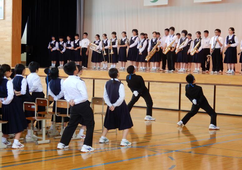 3年生の音楽の授業で、打楽器アンサンブルに取り組んでいます。例年、12月頃に学習する題材ですが、今年度は感染症拡大予防の観点から、この時期に扱うことにしました。