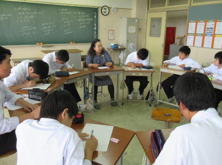 本校の生徒たちの一日は読書から始まります。学校再開から1ヶ月が経過し、今月からは、毎週火曜日と木曜日は朝読書から朝学習に切り替わりました。全校生徒が数学の基本問題に継続して取り組んでいきます。級友と解き方を確認し合ったり、教え合ったりする姿が見られました。小さなことでも積み重ねれば、自分でも驚くほどの力が身に付くと信じています。
