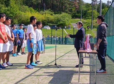 接戦に次ぐ接戦で、手に汗握る戦いが多かったと報告を受けました。その中でも、男子ソフトテニス部が団体で準優勝し県大会の出場権を獲得しました。個人戦でも鈴木・村上組と村上・佐々木組が第3位に入賞しました。女子ソフトテニスは団体で堂々の第3位、個人戦で第2位に入った角野・尾形組が県大会に出場します。地区代表として、精一杯戦ってきてほしいと思います。