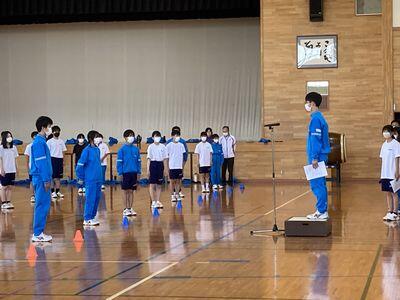 いよいよ今日から運動会(6月15日開催)の練習が始まりました。開・閉会式の流れや、開会式で披露する階上中伝統の「エール」、学年対抗の縄跳び(8の字跳び)の練習まで進みました。紅白も決まり、今日の学級活動において、選択種目やオールメンバーズリレーの班と走順が決定されるとのこと。実行委員会を中心に、大いに盛り上がってほしいと思います。