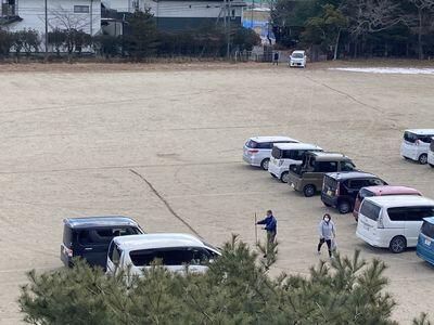 通常は自家用車で来校された際は、体育館前に駐車いただくのですが、今日は校庭に停めていただきました。それは、本校に避難所が開設され、たくさんの方が車で避難してきた際に、どのように車を誘導するのがベストなのか、という訓練の意味もありました。