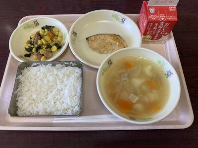 ごはん 鮭のみそチーズ焼き ほうれん草とコーンのソテー コンソメスープ 牛乳 749㎉
