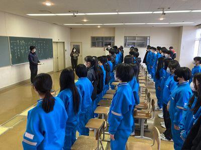 昨日の高校入試を終えた3年生が、明るい表情で登校してきました。いよいよ今日から卒業式の練習が始まります。