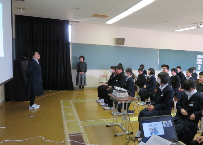 授業参観では,1年生が職業調べの発表会を行いました。40名全員が,興味のある仕事について調べ,内容を1分間にまとめて,一生懸命に発表することができました。