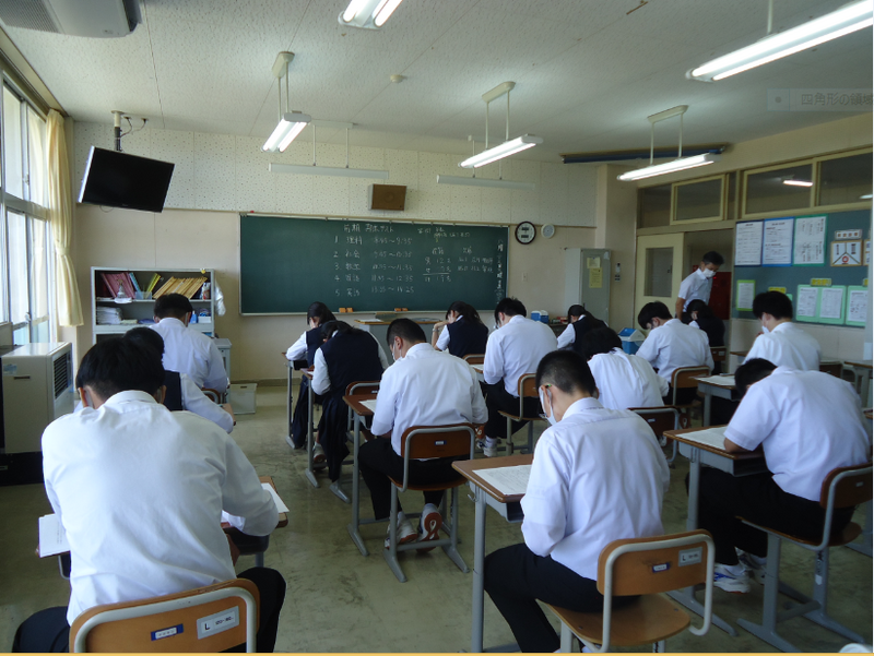 今日は、今年度初めての定期テストに臨みました。左から1年生、2年生、3年生の様子です。放課後に校長室前の自学スペースで学習していた3年生にテストの感想を聞いてみたところ、「国語がバッチリできました」「苦手の数学に力を入れて頑張ったら、手応えを感じました」と笑顔で答えてくれました。1、2年生の皆さんはテストを終え、いつも以上に晴れ晴れとした表情で部活動に取り組んでいるところです。