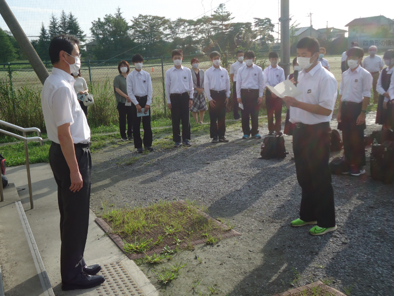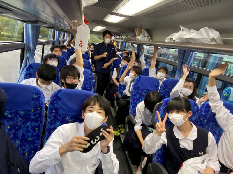 3年生が修学旅行から無事に帰ってまいりました。帰校式では、副実行員長さんが「新型コロナウィルス感染症の影響により東京ではなく、山形への修学旅行となりましたが、山形の自然・歴史を学ぶとともに、学年の団結力をさらに強いものにすることができました。・・・この修学旅行を実施できたこと、旅行先でお世話になった方々、添乗員さんや運転手さん、ガイドさん、カメラマンさん、引率してくださった先生方、家族の皆さんに感謝します。」と述べました。校長先生からは、「修学旅行のテーマ "One Team(ワンチーム)"のとおり、自分のことよりも集団を優先させて、気持ちよく活動していました」「学校生活で身に付けてきたことを外でもしっかりと発揮してきました」「皆さんはその時その時をしっかりと楽しめる集団です。安心感があるから楽しめるのだと思います。3日間、私自身とても楽しかったです。皆さんにたくさんの笑いをもらいました。」とお話されました。