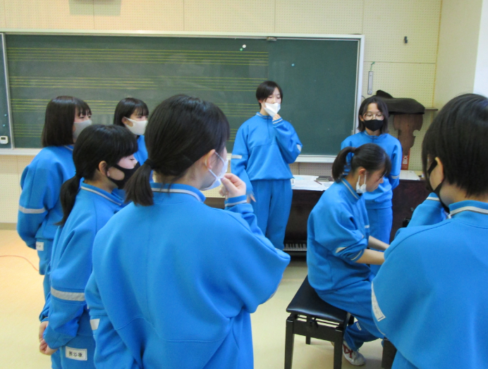 今日の6校時に火災を想定した避難訓練を行いました。今日の訓練は1階の家庭科室から出火したことを想定した訓練でした。気仙沼消防署員の方々とシステム防災の方に立ち合っていただき、家庭科室の近くにある非常ベルを実際に鳴らすところから始めました。生徒が避難したことを確認した後に、消火器を使った消火訓練に臨みました。さらに、今年度は、消火栓を使った消火訓練も体験しました。次の煙道体験では、予想以上の煙と視野が全く失われてしまう怖さを実感しました。