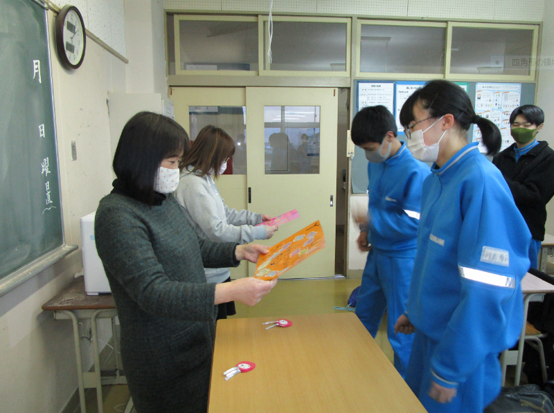 11月から始まった放課後学習教室が今日で最後となりました。本校では、多くの3年生が参加し、熱心に自主学習に取り組んできました。今日は、お世話になった支援員のお二人に、感謝の気持ちを寄せ書きにして伝えました。特に、生徒たちが不安な気持ちになった時など、お二人にはあたたかい言葉をかけていただきました。生徒たちは、お二人の想いが込められただるまのお守りを手にして、嬉しそうな表情でお守りを見つめていました。