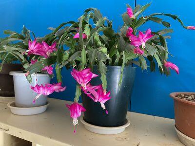 玄関のシャコバサボテンが満開です
