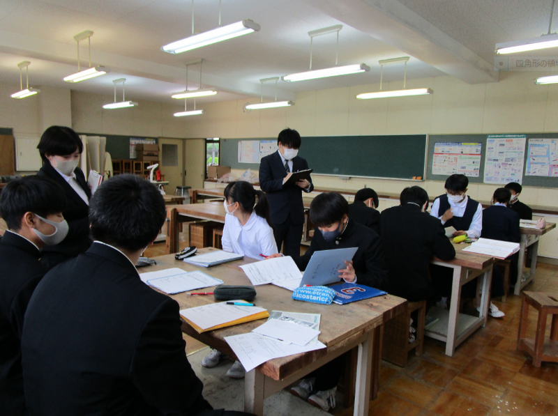 今日の5、6校時に本校の防災学習アドバイザーである東北大学災害科学国際研究所の佐藤翔輔准教授にお越しいただき、防災学習の中間発表会を行いました。翔輔先生には10の班を見回っていただき、班ごとの中間発表(探究的学習の途中経過)に対する助言をいただきました。「教訓は用言止めで伝える」「岩手と宮城の防災意識の差はどうして生まれたのか調べてみる」「聞き手を意識した考察をしてみる」「理想だけでなく現実的にどこまでできるか検討し提案する」「テーマに沿ったまとめになるようにする」「プレゼンに加え、一枚の絵にして表すとさらにおもしろくなる」「事例を一般化するとよい」「インクルーシブな避難所設営を目指し、自分たちでどこまでできるのか、設営経験を生かして検証してみる」など、貴重なアドバイスをいただきました。2年前に翔輔先生から教えていただいたアンケート結果のクロス集計に取り組んだ班もあり、褒めていただきました。12月の防災学習発表会を目指し、今回のアドバイスをもとに、ここからさらに学習を進めます。