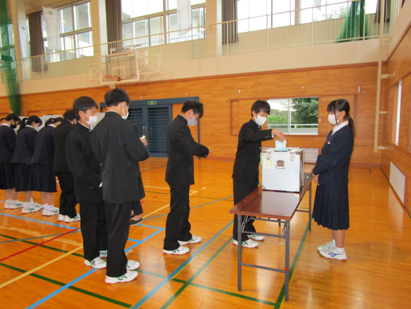 また、今回の役員選挙にあたり、縁の下の力持ちとして選挙管理委員の皆さんが力を尽くしました。9月15日の公示以来、選挙運動のお世話、演説会の企画・運営、開票作業など、本当によく頑張りました。「よりよい学校とは?」と、全校生徒、教職員で真剣に考える貴重な時間になりました。