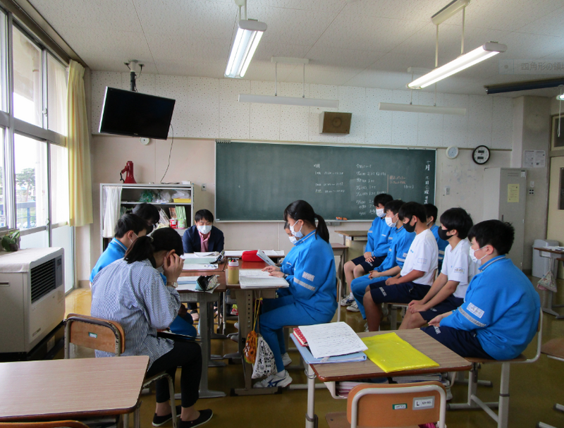 今日から本校卒業生のお二人が教育実習にいらしています。2週間という短い期間ではありますが、この間、郷土料理体験学習、生徒会役員選挙、防災学習中間発表、運動会練習があります。今日と明日は授業の参観や講義が中心となりますが、明後日からは、実際に教壇に立つ予定です!