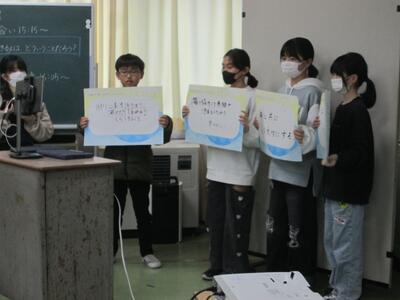 11月22日(金)に、第14回海洋教育こどもサミットin気仙沼(オンライン大会)があり、階上小の5年生が参加しました。気仙沼市や岩手県洋野町の小学校の発表を聞き、階上小の 5年生もこれまでの海洋学習で探究してきたことを代表児童が発表しました。質問にも堂々と答え、学び合いの輪を広げることができました。その後、「『海と生きる』とは、どういうことか。」について、事前にフリップボードに書いていた自分の考えをもとに意見を交流し、さらに考えを深めました。環境を守る、海の恵みに感謝する、海に関する伝統や文化を大切にするなど、すばらしい考えが出ました。これから、自分ができることを具体的に考えていってほしいと思います。