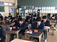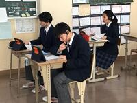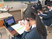 英語の時間に、全学年の生徒たちは外国人との英会話を行っています。30分間,オンラインで英語だけで会話をしており、はじめは緊張した様子でしたが、2回目、3回目となると、徐々に笑顔で相づちを打ちながら楽しそうに会話するようになってきました。今日は、2・3年生が取り組みました。