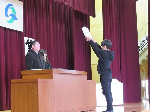 3月14日(金),市内の先陣を切って卒業式を行います。11日はそれに向けて予行を行いました。卒業生だけでなく,5年児童,係の教員もついての練習です。今年,PTAからいただく卒業証書フォルダでの証書授与の所作を確認したり,別れの言葉の歌や言葉など気持ちを伝えるための声の出し方,大きさを確認したりしました。予行を終え,また一歩卒業に近づきました。14日に向けさらに気持ちを高めていきます。