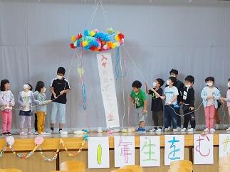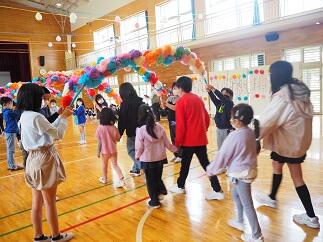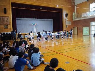 5,6年生の計画委員会が中心となって,1年生を迎える会を行いました。くす玉,ゲーム,プレゼント,1年生からのお礼のダンスと,楽しくプログラムは進みました。1年生の笑顔もたくさん見られ,全校で楽しいひとときを過ごすことができました。